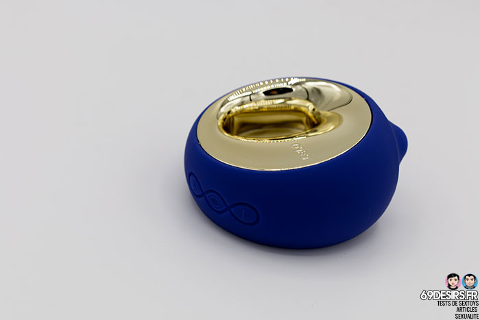 So it’s a kind of ball, but between the ball and a flat circle, if you know what I mean, within its center or almost, an area allowing to slide one or two fingers to manipulate it. We find the trademark of the Insigna range, that is to say, the golden part of the center, which shines brightly. It’s ABS plastic, but it looks classy. Then, we notice the three buttons, the input to charge the product and of course, the external stimulating part, which seems much more prominent than on the first model.