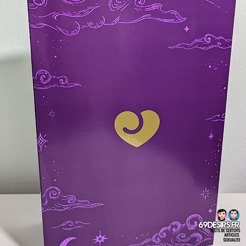 To start with, we can see that Lovehoney is going from red to purple! Indeed, last year’s calendar used red as the main color and all the products revolved around it. This time, it’s purple, which we think is better. Kitty really likes this choice as well as the accompanying illustrations, with drawings of clouds, stars and the moon. On the front of this calendar, we have the golden Lovehoney heart in the center. Upon opening, a sheet protects both sides of the calendar and it is contained, prior to that, in a protective pouch.
