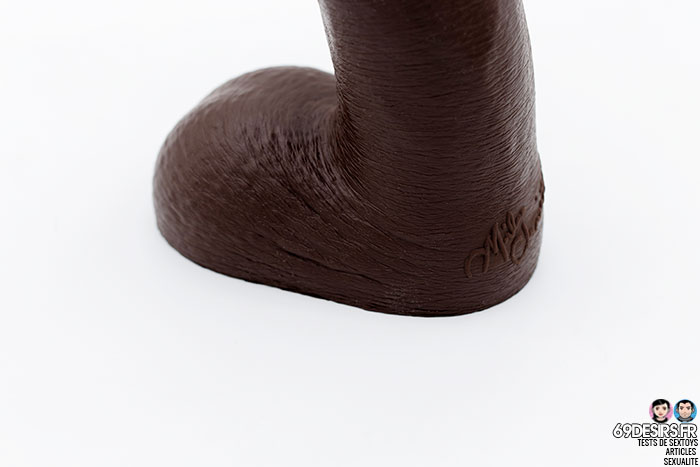To give you more details, know that at the base, where the testicles are, but on the side of the shaft, we have the signature of the actor. This is the same principle as on the Fleshlight and Fleshjack masturbators. In addition, under the base, we have a hole. This is a feature that will interest some people, especially for its compatibility with the Vac-U-Lock system! We’ll tell you more about it later in this review. By the way, this one is made in the same way, with a small piece of silicone to plug the hole when it is not used.