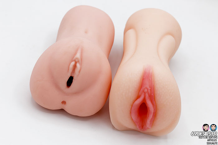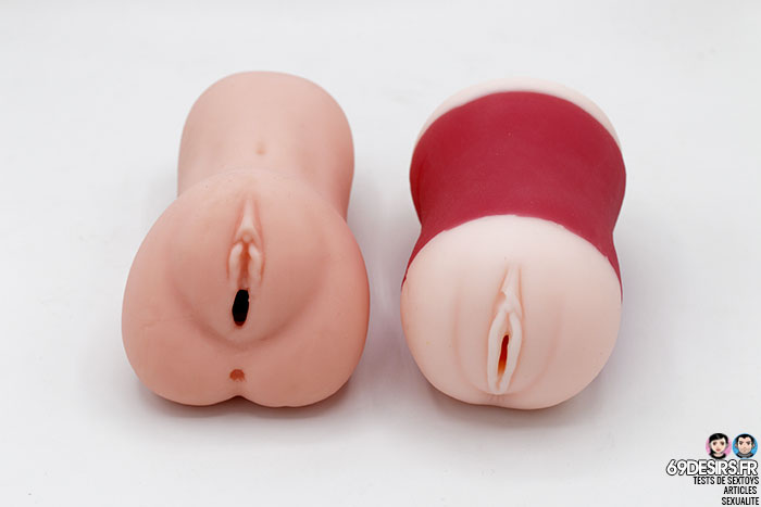 In terms of details, we can see that the vulva is rather representative, with the large lips, the small ones, the clitoris, its cap, without being very fine. For example, we can’t say that it is the same level as the Kyo 7 Sins or the Britney masturbator that I had the opportunity to review. Here, it’s quite basic, but it’s rather average. You can even see a small hole under the vulva, which represents the anus, but which is not penetrable. We can also note the difference in color between the outside of the product and the inside. Indeed, inside the sleeve, the material is more red, trying to imitate the membrane that covers the vaginal muscles.