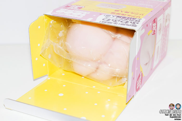 It is a masturbator who is not very big. Indeed, it is 17 cm long (6.69″), for 12 cm wide (4.72″) and 10 cm high (4″). It is therefore a masturbator much smaller than the Puni Fuwa Mochi 2000 or the Hanjuku Half Mature. In fact, the Puni Virgin 1000 Fuwatoro is an improved version of the Puni Virgin 1000. Here, the Fuwatoro version is much more flexible and elastic. This is also something that we quickly notice.